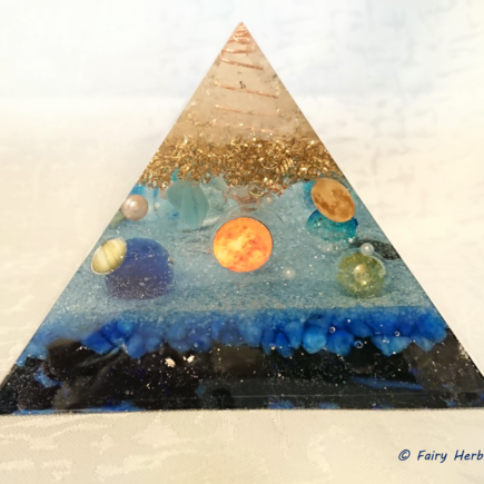 太陽と月/無限に広がる球体エネルギーをイメージしたピラミッド型オルゴナイト